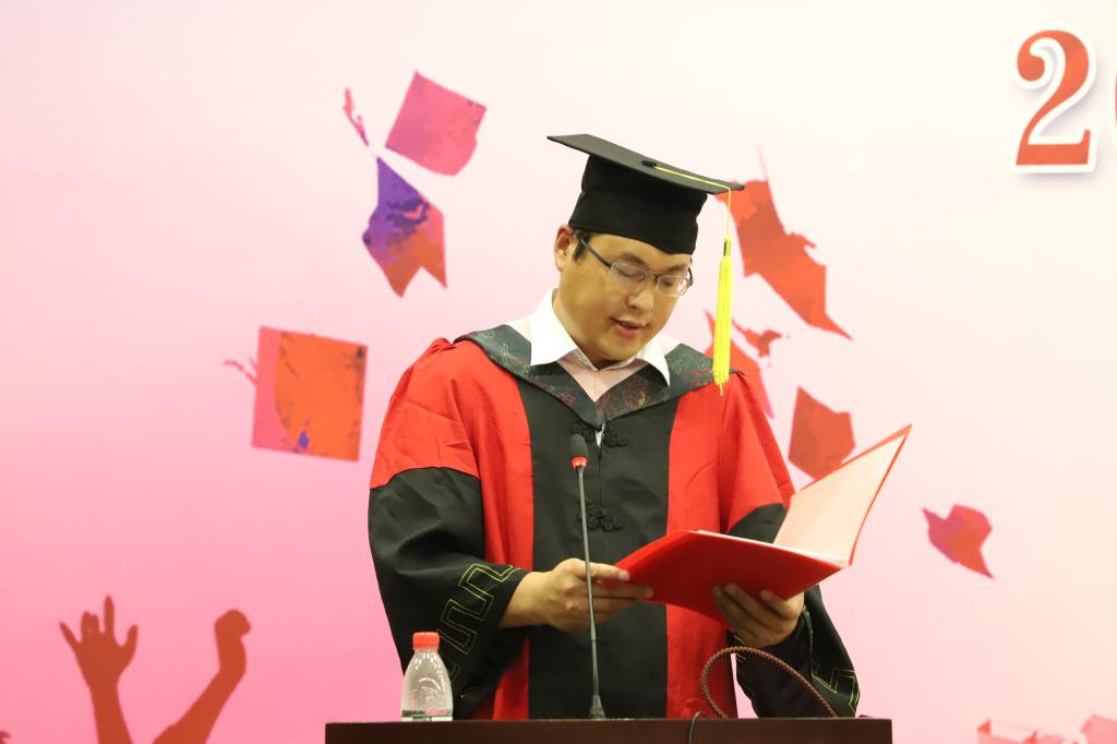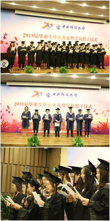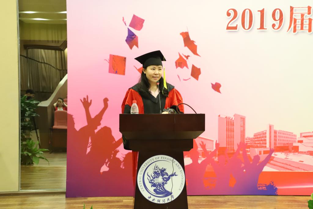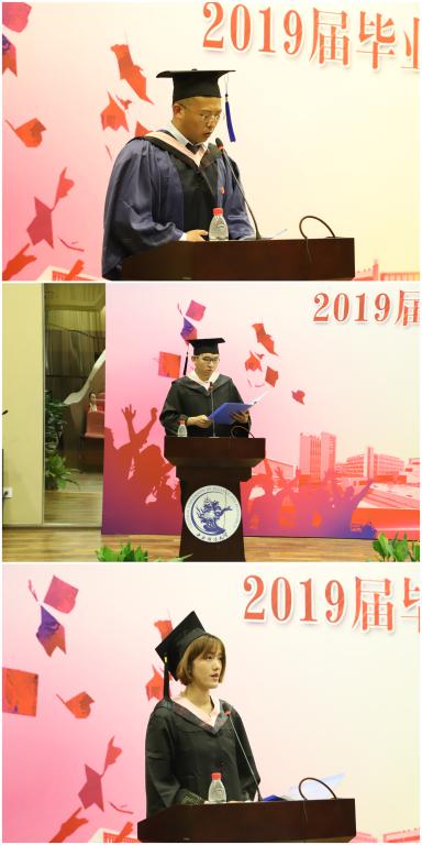 赵琦、王相谋、刘嘉琪作为2019届毕业生代表发言,他们追忆在中财度过的青春岁月,感谢大学生活中遇到的点滴,承诺在日后做到“生也有涯而学无涯”,不负韶华、奋斗不息、心怀家国,并对母校、学院和师长们致以真挚的祝愿。