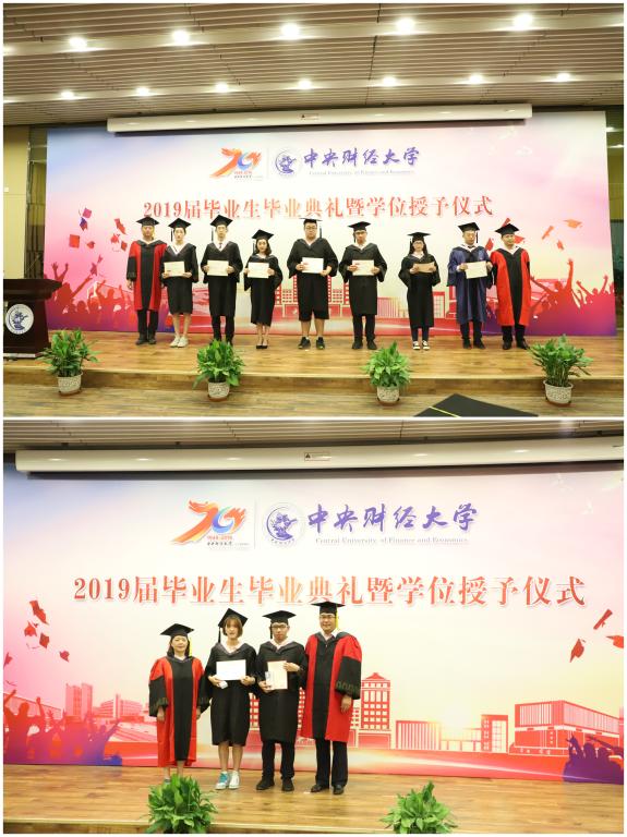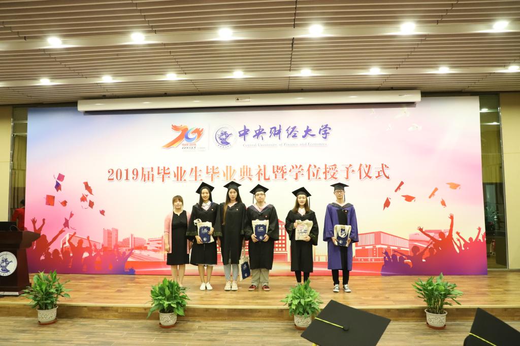 6月20日下午2时,新葡萄官网在沙河校区图书馆报告厅隆重举行2019届毕业生毕业典礼暨学位授予仪式。典礼由学院党总支书记林琼主持,出席典礼的有:新葡萄官网amg副院长张本家、副院长兼15级1班班主任王裕雄、副院长王欢、院长助理张丛杉。专业课教师闵捷、陈绮文、刘彩凤、马法超、李永红、潘璇,15级2班班主任张若,中财排球队于雅光,15级本科生辅导员李秋月,17级研究生辅导员杜文竹,学院教学科研办公室主任郭佳佳,院学生工作办公室主任、本科生辅导员张振磊,场馆管理办公室副主任巴蕾,教务干事张俊强。现场还有前来欢送毕业生的低年级代表,以及远道而来的毕业生的亲友们。
