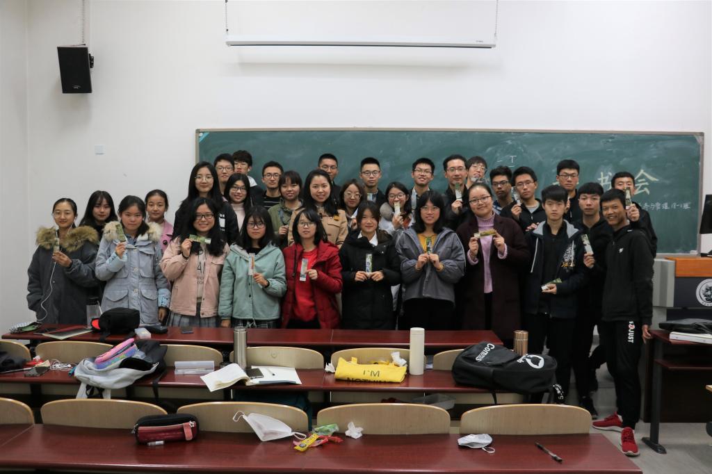 读书会的最后,班长为每位同学发放了精美的书签。伴随着师生合影时相机快门声的落下,本次“心阅读,重温名著”新生读书会圆满结束。
