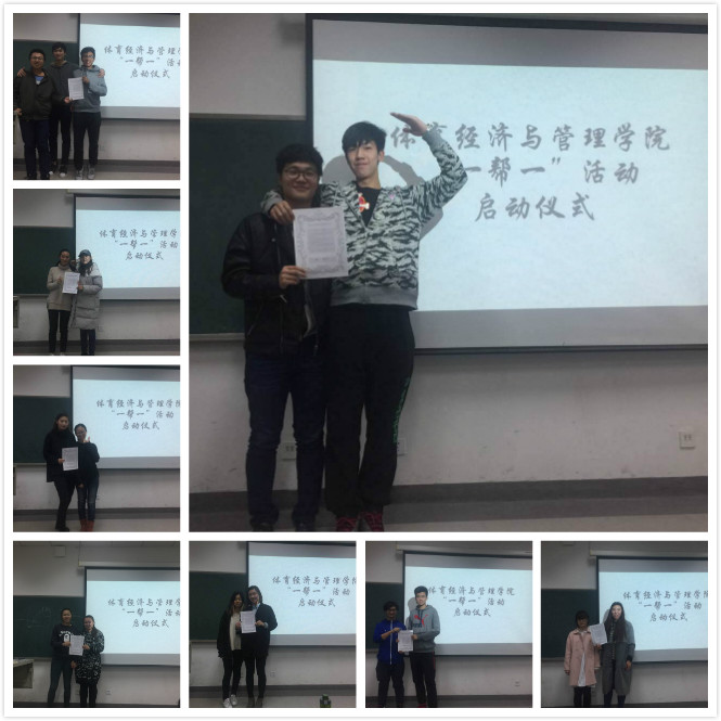 “一帮一”,顾名思义就是在学院内部,由1班同学牵头,在学习生活上帮助2班(运动员班)同学的一个活动。但随着时间的推移,“一帮一”渐渐演变为1班同学帮助2班同学更好地开展学习工作,用专注的精神感染活跃的2班同学,而2班的同学帮助2班同学丰富课余生活,用无限的动力丰富彼此的大学生活。“一帮一”活动是新葡萄官网发展中沿袭的优良传统,希望体经大家庭相互帮助、共同进步的精神永远传承。