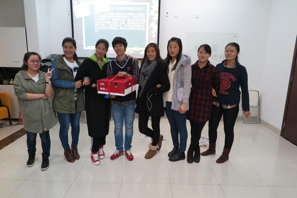 游戏过后每个人脸上都洋溢着笑容。接下来是惊喜环节,两个班的女生分别给本班男生赠送了自己精心准备的小礼物以庆祝“男生节”的到来。礼物或是一本书,或是一个坐垫,或是一个蛋糕,每个收到礼物的男生都十分开心。最后,每个同学都在班委精心准备的明信片上写下了自己对未来的愿望,由心理委员代为保管,约定好明年的“男生节”之时再打开。在蒙蒙秋雨中活动取得圆满成功。