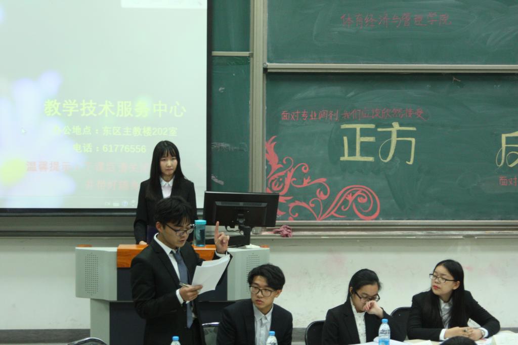 正方一辩在立论中就“我们应该以积极的态度欣然接受我们的专业,潜心学习”的观点展开论述。反方则以“我们应通过提升能力来改变自身处境”为理论依据论证他们的观点。在接下来的立论,盘问,攻辩等环节中,正反方展开了激烈的辩论。双方选手论述思路清晰,逻辑严密,有力地论证了各方的观点,现场气氛持续升温。在随后进行的自由辩论环节中,双方选手就辩题展开了更深层次的辩论,其中辩手们关于自我选择的思考,关于自我价值,社会价值的讨论精彩纷呈,一次次将比赛推向高潮。