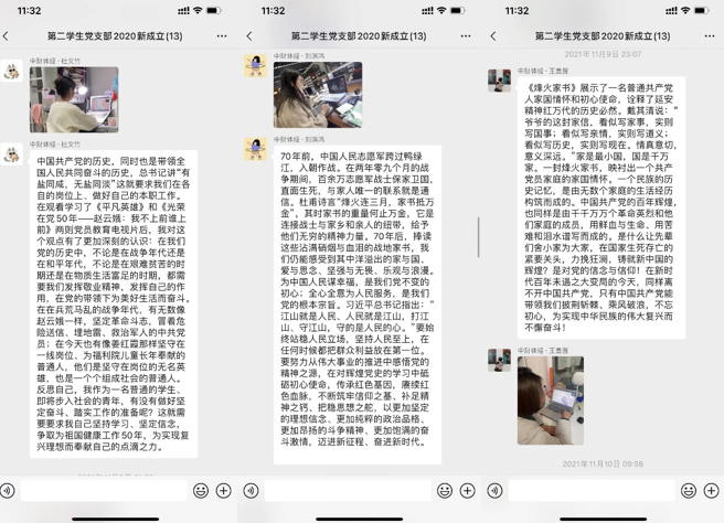 在本次活动中,同志们以《烽火家书》集中观看为契机,交流了近期党史相关材料学习的成果。在活动中第一学生党支部的党员同志们积极参加,踊跃发言,对展映作品自发展开交流讨论,通过共同学习加强了自身党的理论基础,提升了党性修养,取得了一定的成果。