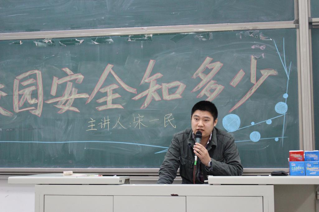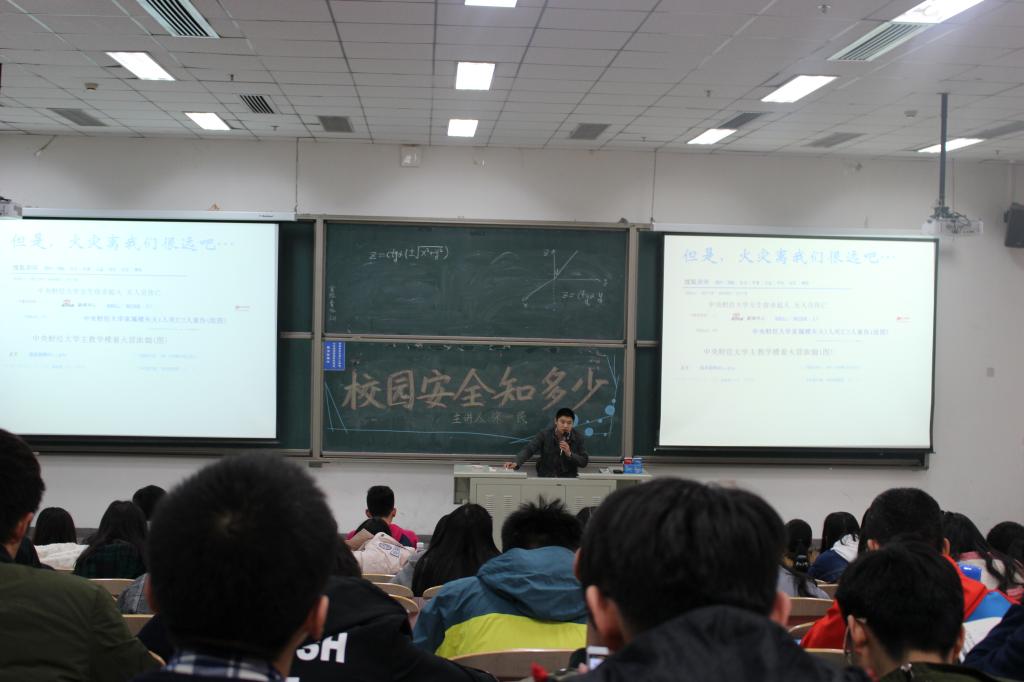 3月22日下午13点30分,新葡萄官网与文传学院于沙河主教216M联合举办了主题为“校园安全知多少?”的安全教育讲座,主讲嘉宾为学校保卫处宋一民老师。宋老师是2016级新生军训期间负责军训安全的参训教师之一,主要负责保障学生作训期间的各类安全,在学生晚值班,保健班值班,作训战场等多次与学生近距离接触,与学生保持了良好的关系。邀请宋老师做讲座嘉宾极大程度的激发了同学们对于安全教育讲座的聆听度。