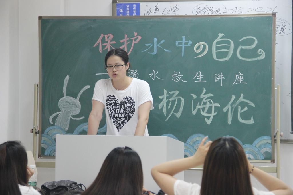 5月27日下午2点半,新葡萄官网amg一场题为“保护水中的自己——溺水救生”的知识讲座在沙河校区2号学院楼311教室举办。本次讲座由14级院辅导员李秋月老师主持,国家级游泳运动健将、新葡萄官网amg14级2班杨海伦同学主讲,14级学生聆听了此次讲座。