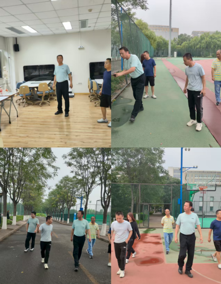 在学院南路校区检查中,发现篮球架底座生锈、足球场和田径场凹陷、配电室屋顶漏洞等问题,王副院长要求工作人员要及时上报进行整改;在沙河校区,重点检查了运动场地及实验室,发现田径场围栏存在倾斜等问题,现场就协调基建处进行解决。