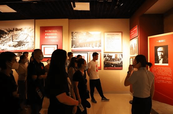 紧接着,一行人又进入了另一个展馆:光辉典范——抗战时期中国共产党党风廉政建设展,整个展览分为“积基树本赓续前行”“延安作风光辉典范”“常抓不懈警钟长鸣”3个部分,共展出历史照片237张,文物复制46件,全面展示了中国共产党在抗战时期开展党风廉政建设的艰辛和取得的光辉成就。